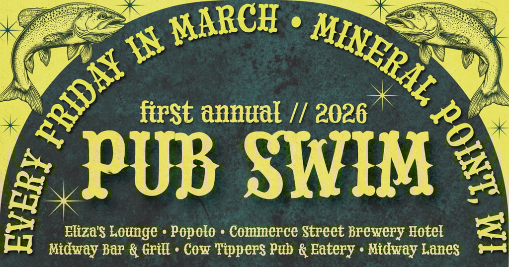 "Swim" your way across Mineral Point while enjoying Fish Fry dinners any (or every) Friday in March. All you have to do is order a Fish Fry on Friday and you're entered. Watch for "Pub Swim" themed drinks at each restaurant and prize winners each week!